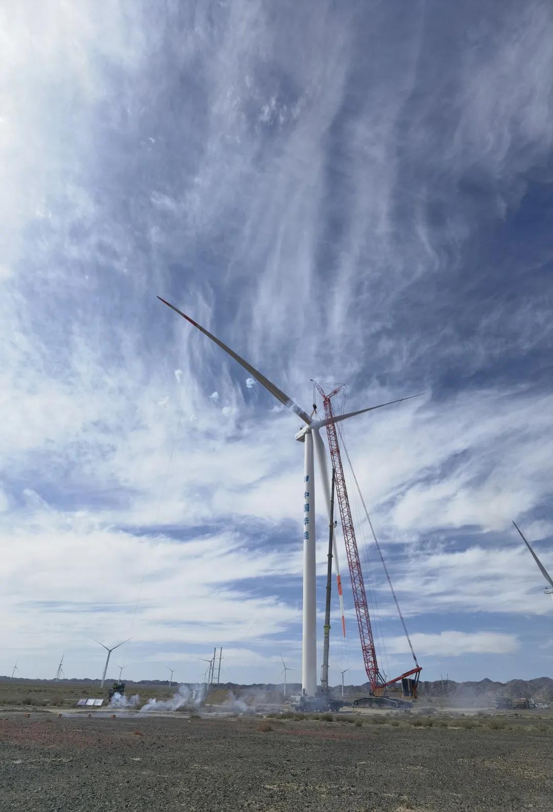 8月20日,中国船舶集团旗下中国海装顺利完成甘肃省单机容量最大风电场——华能甘肃酒泉安北第三风电场C区200MW项目全部风电机组吊装。