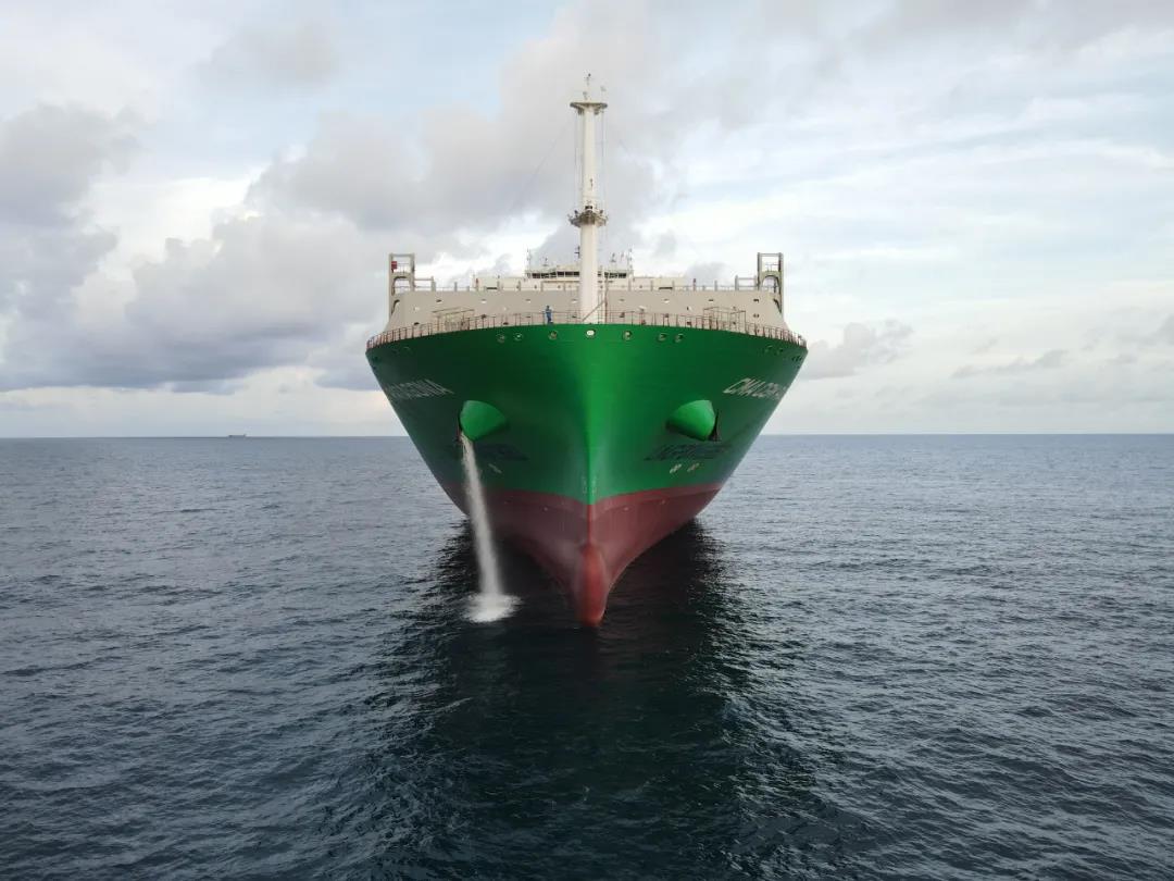 采用薄膜型燃料舱、双燃料推进。以LNG为主要燃料,采用了中国船舶集团自主品牌主机双燃料WinGD主机,配置了GTT MARK III薄膜式燃料舱,容量达14000立方米,可支持船舶往返亚欧航线。