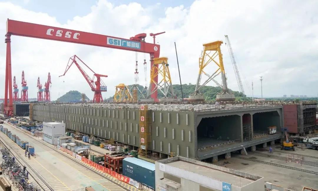 近日,中国船舶集团旗下广船国际制造的深中通道沉管隧道E16管节钢壳顺利完成交付过驳。这是广船国际建造交付的第10个管节,标志着广船国际承担的管节制造任务已完成过半。