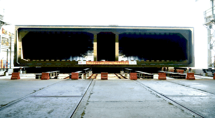 E15管节钢壳于8月23日过驳交运。紧接着,E16管节钢壳于8月24日完成纵移,于9月24日通过厂内联合验收,从纵移到完成交付仅用时1个月,创造了目前为止的最短周期纪录。