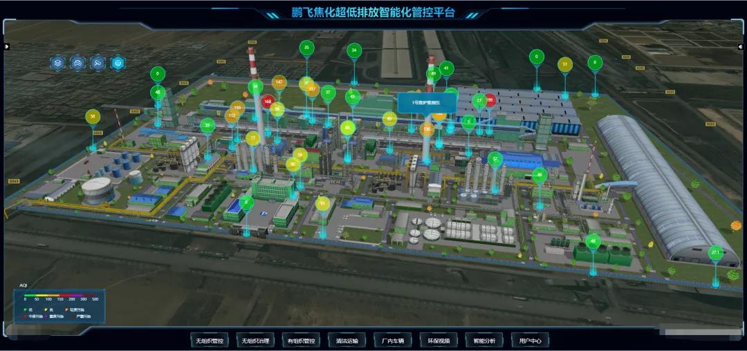 一体化管控平台项目以焦化行业超低排放政策和生态环境部重污染天气应急减排评级政策为依据,采用物联网、三维数字建模、视觉AI联动、三屏联动等先进技术,打造业内领先的“有组织排放+无组织排放+清洁运输”环保管控治一体化平台系统,精准动态监测污染源,显著提升企业内部环境管理效率,降低企业发展的环境风险。