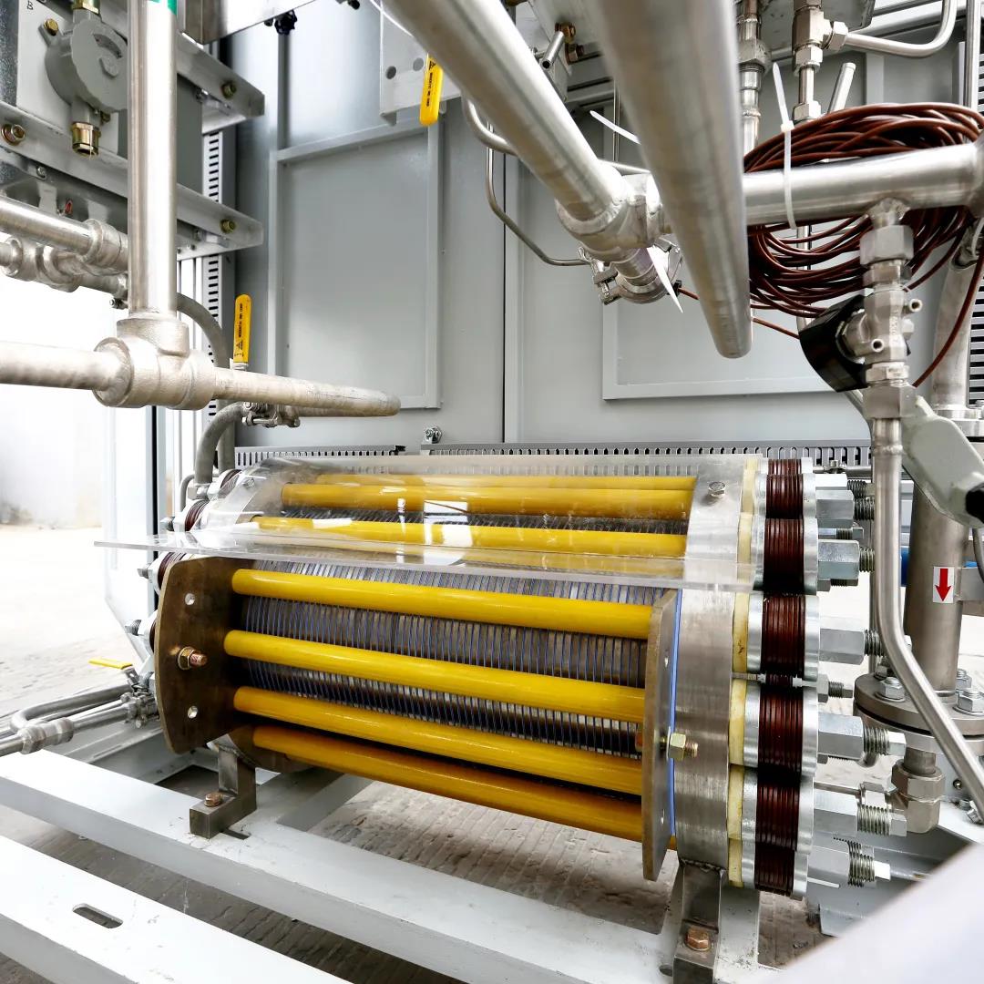 该设备为双极压滤式加压水电解制氢装置,能够高效制取氢气,能耗低、安全性能优越,可年均节省电费百万元。