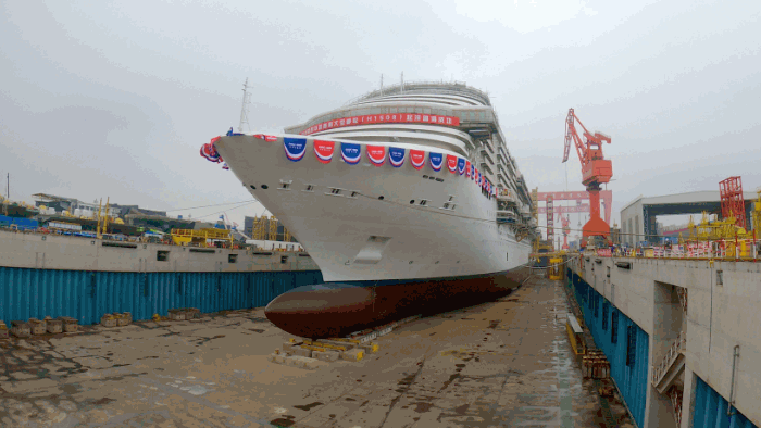 2021年12月17日,由中国船舶集团旗下外高桥造船建造的中国首制大型邮轮顺利实现坞内首次起浮里程碑节点,宣告结构和舾装建造的“上半场”圆满收官!