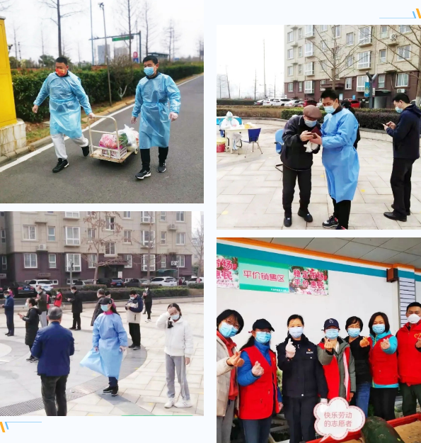 疫情下,生活物资日渐紧俏,为保障业主安全,“杰瑞花园”服务点在协助社区开展核酸检测工作的同时,积极与小区超市沟通,为居民准备生活物资。志愿者每天6:30到超市将蔬菜装袋、称重,控制进入超市人数,主动帮助行动不便的老人、居民在平台上采购蔬菜送至家门口。连日来,他们已经不记得爬了多少栋楼,汗水浸湿了多少遍衣服。但看到一个个小小的帮助,解决了居民的一个个实际难题,他们往往忘记了辛苦。