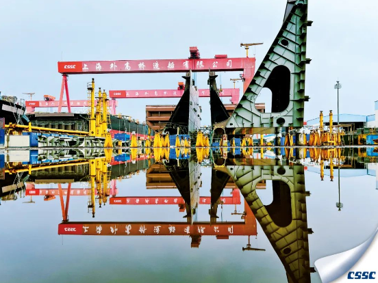 画外轻雷池上雨,焊声将碎水中钢。在万名工人辛勤耕耘的船厂,雨后片刻寂静,静谧的水中钢铁映画即将被机器轰鸣的声音打破。