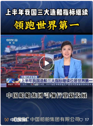 今年上半年,中国船舶工业主动作为、攻坚克难,取得亮眼成绩。今日,人民日报一版、央视新闻发出重磅报道!