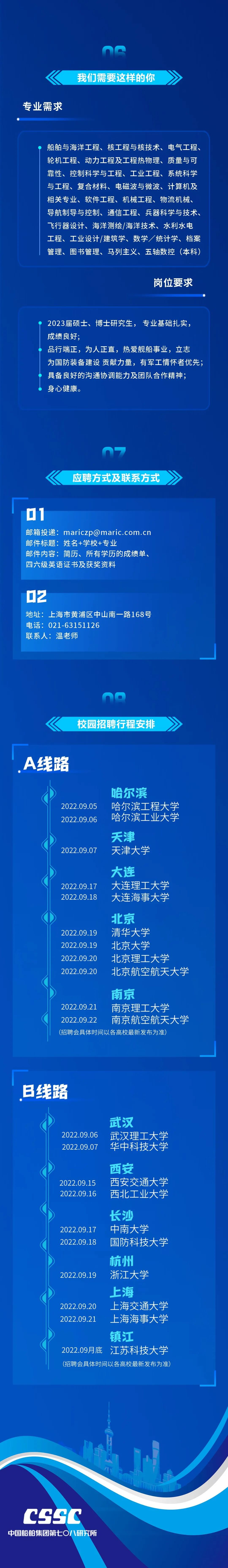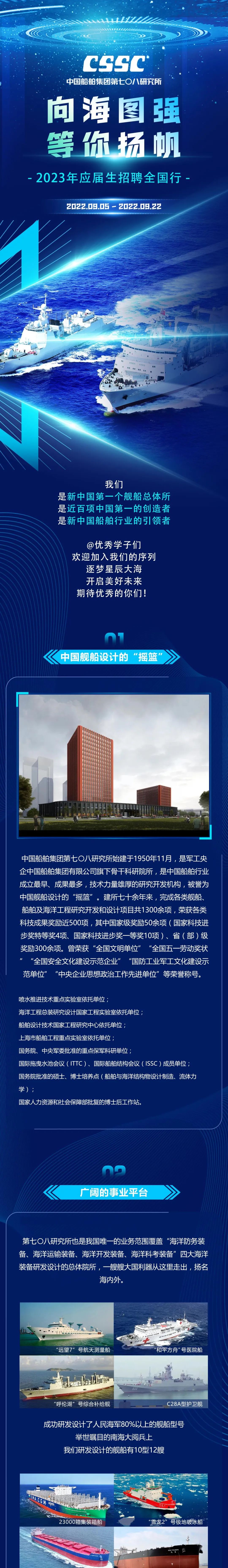 中国船舶七〇八所2023年应届生招聘行程出炉!