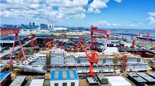2019年10月18日,中国船舶集团高质量发展“一号工程”——中国首艘国产大型邮轮在外高桥造船正式开工,全面进入实质性建造阶段,标志着中国船舶工业正式跨入大型邮轮建造新时代;2020年11月10日,迎来坞内连续搭载总装里程碑节点,标志着中国船舶工业在摘取“皇冠上最后一颗明珠”的征程上,又迈出了坚实的一大步;2021年10月18日,如期实现全船贯通;12月17日,如期实现坞内起浮,标志着该工程从结构和舾装建造的“上半场”全面转入内装和系统完工调试的“深水区”。2022年8月8日,第二艘国产大型邮轮正式开工建造,大型邮轮迈入“双轮”建造时代,标志着中国船舶工业已初步掌握大型邮轮设计建造关键核心技术,实现批量化、系列化建造指日可待。备受国内外关注的首艘国产大型邮轮目前已全面进入内部装潢和设备(系统)调试关键阶段,朝着最终的命名交付里程碑节点稳步迈进。