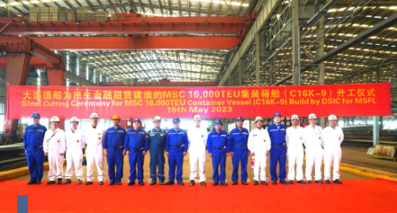 近日,中国船舶集团旗下大连造船为MSC地中海航运建造的16000TEU集装箱船9号船在天津基地开工。该船是大船天津建造的首艘LNG双燃料动力16000TEU集装箱船。