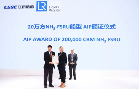 20万立方米NH3-FSRU船型发布,英国劳氏船级社(LR)颁发该船型的原则性认可证书。