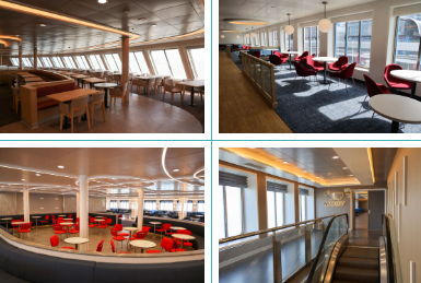 该船有3个餐厅、4个酒吧、1个超市、1个游乐场,内装方面已实现了从设计、制造、安装全过程的100%国产化,并且大量的家具、灯饰都在珠三角就地完成采购。