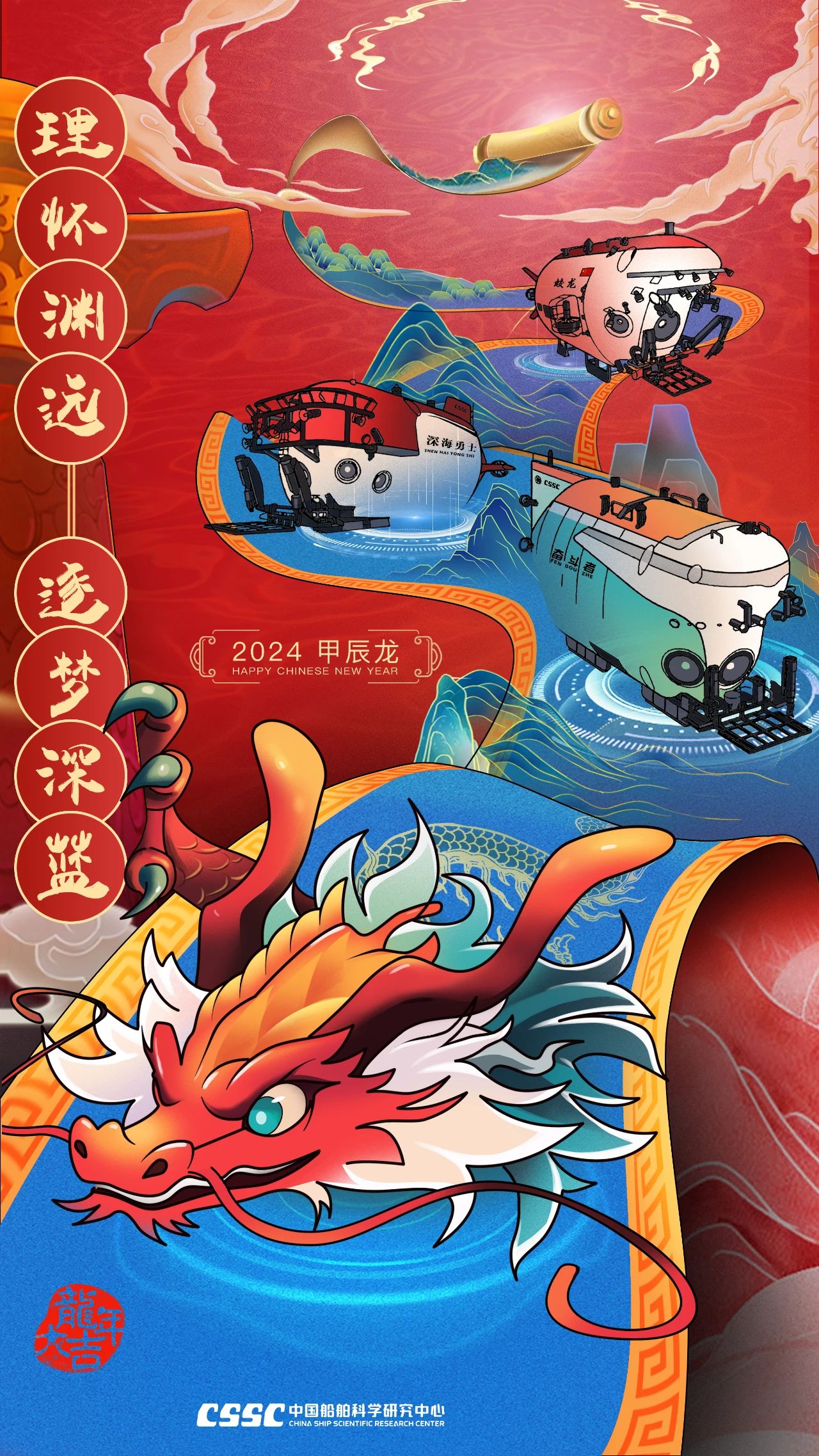 甲辰龙年即将到来,中国船舶集团成员单位第四次带来独具创意的拜年海报为大家送上诚意满满的祝福。