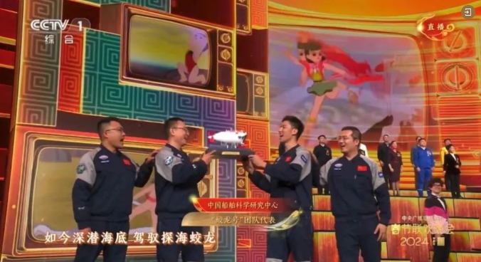 在2024年的春晚舞台上 ,《看动画片的我们长大了》这个节目引起观众广泛共鸣。中国船舶集团七〇二所“蛟龙”号载人潜水器研制团队代表参与其中,给人留下了十分深刻的印象。看《哪吒闹海》的我们,如今深潜海底、驾驭探海蛟龙。