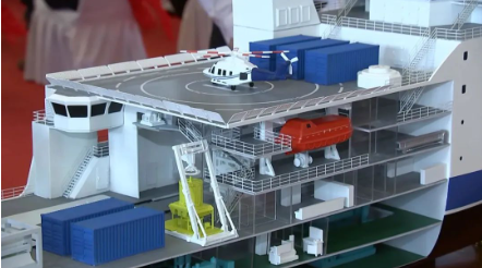 该船于2023年10月18日开工建造,船舶总长110.8米,型宽20.0米,排水量约7000吨,设计航速15节,续航力10000海里,定员80人,具备无限航区全球航行能力。