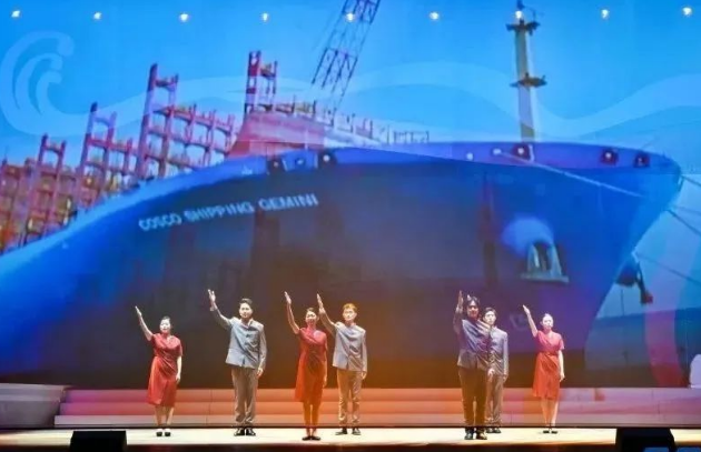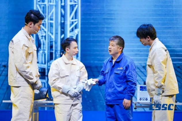 现场,来自中国船船集团江南造船(集团)有限责任公司、沪东中华造船(集团)有限公司、上海外高桥造船有限公司、中船动力(集团)有限公司和中国船舶集团公司第七〇二研究所的青年职工将真实工作案例与理论原文结合,将“发展新质生产力”作为工作方向与指引,将他们的造船故事亲身演绎。故事从《船舶青年说》起航,共讲述了五大篇章,分别为江南造船如何延续百年初心、沪东中华造船LNG船毫厘铸匠心、七〇二所从“蛟龙”号到“奋斗者”号将深潜进行到底、外高桥造船“爱达•魔都号”大型邮轮“4个120天”的极限挑战、江南造船“钢铁心脏”工程师攻克大型作战舰建造的不凡创新路,台词铿锵有力、情感真挚流淌,绘就了一幅精彩的中国船舶梦画卷。