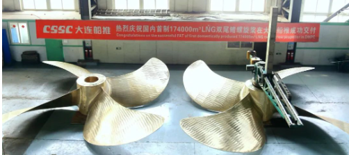大连公司下属大连船推成功交付自主开发设计制造的17.4万立方米LNG运输船双尾鳍螺旋桨。