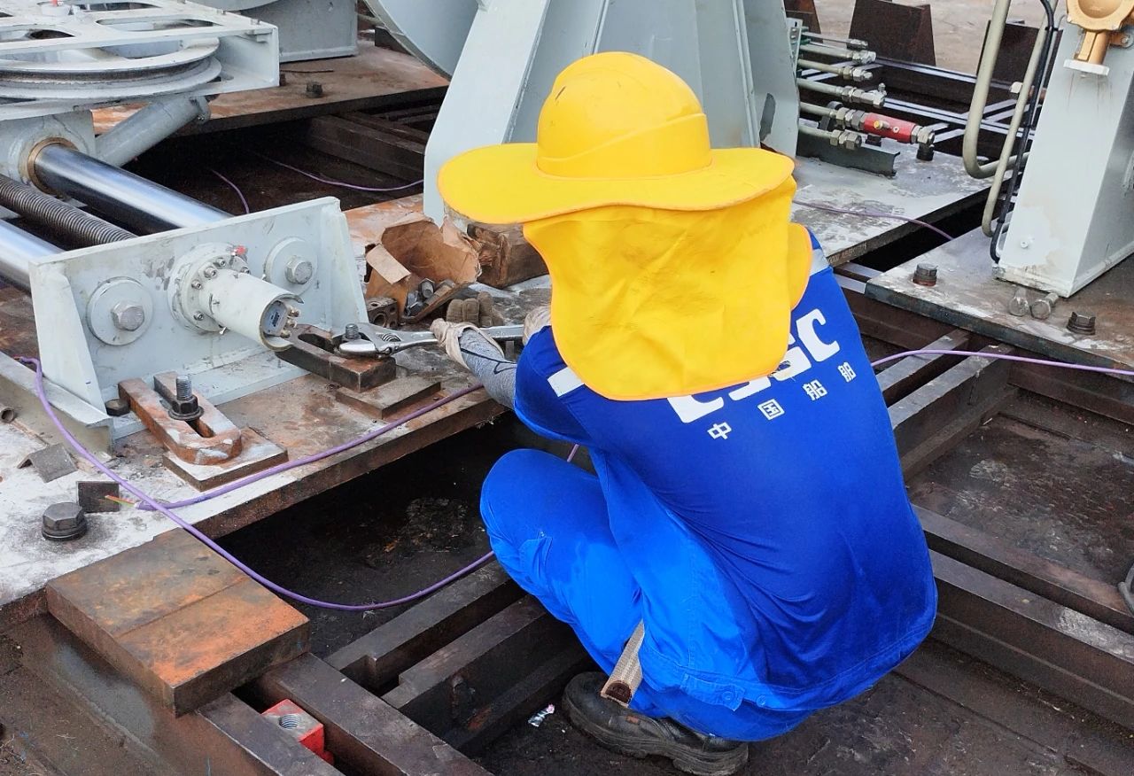 华南船机——员工头顶烈日、挥汗如雨,战高温、保履约,坚持完成多台海洋平台起重机、箱式起重机、特种绞车的安装调试工作。