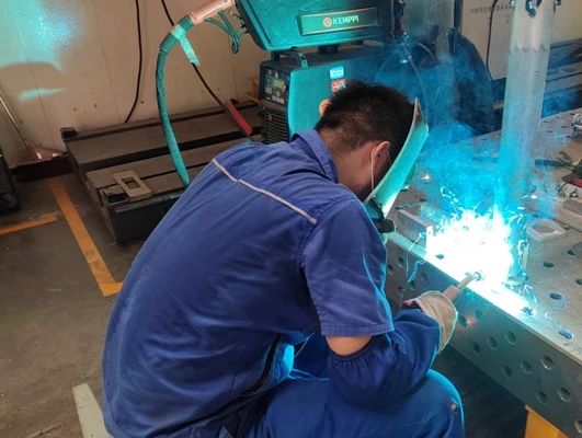 广船国际——焊工正在开展分段焊接施工。