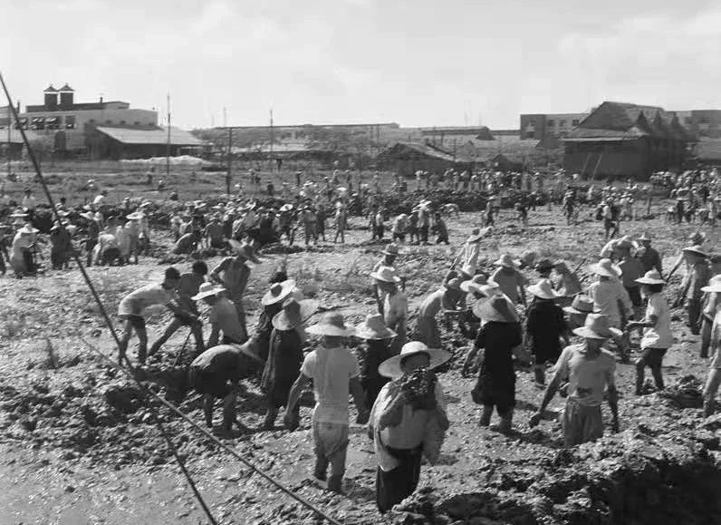建厂初期工人徒手建设船厂