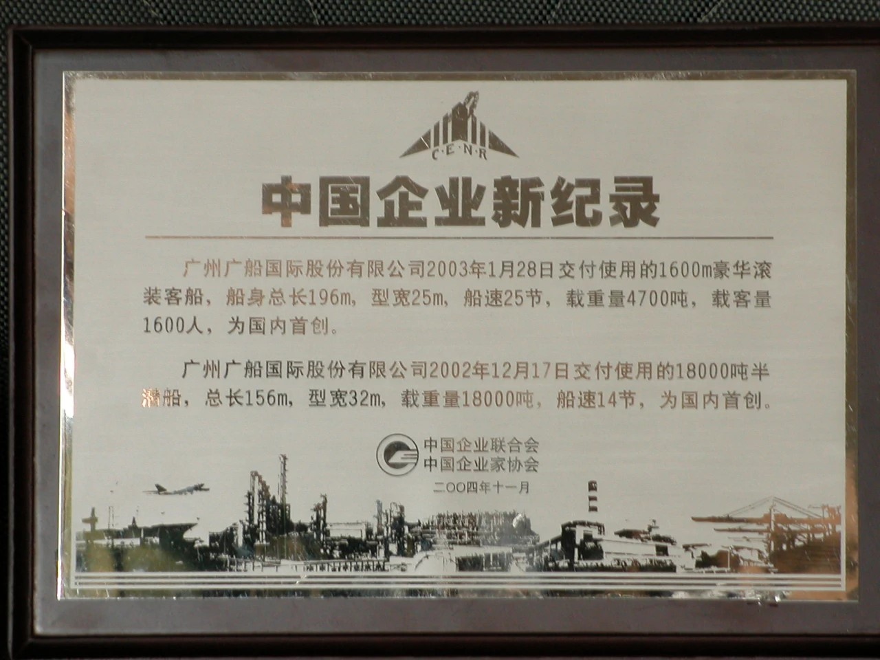 2004年,建造的豪华客滚船和半潜船获“中国企业新纪录”