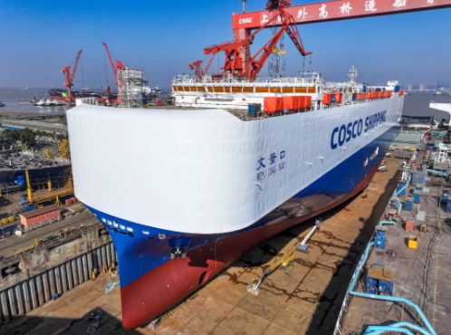 12月2日,中国船舶集团旗下外高桥造船首制8600车液化天然气(LNG)双燃料动力汽车运输船(PCTC)顺利出坞,达成船坞周期100天既定目标,即下坞至起浮50天,起浮至出坞50天,在民船建造领域继续保持“加速度”。