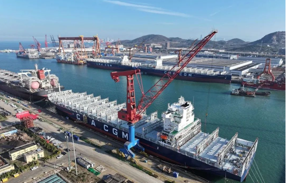 12月3日,中国船舶集团青岛北海造船与中船贸易作为联合卖方,为达飞海运建造的系列5500TEU集装箱船“CMA CGM KAURI”号举行命名交付仪式。该船是北海造船交付的第8艘5500TEU集装箱船,也是北海造船年度交付的第19艘船。