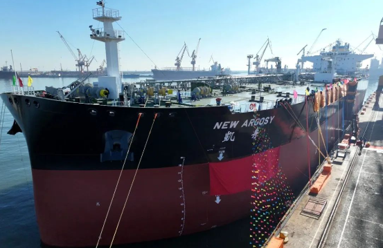 12月9日,中国船舶集团所属中国重工大连造船为招商轮船建造的11.5万吨原油船“凱舟”号命名交付。这是大连造船山船重工今年交付的第15艘船舶,标志着山船重工超额完成全年交船目标任务。