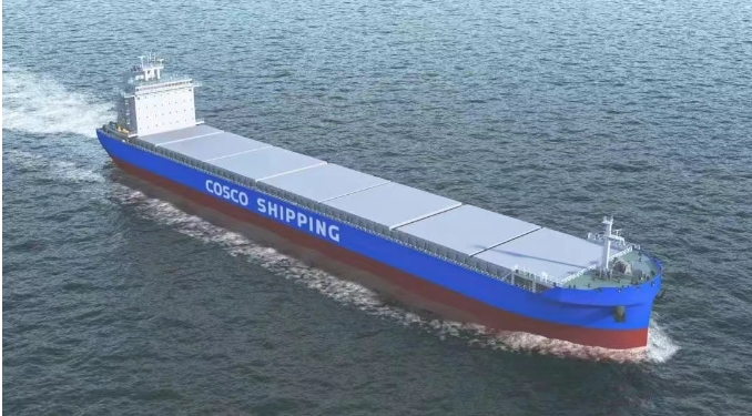 该型船在燃料选择上具有灵活性,既能以甲醇为动力来源,也能使用常规燃油作为燃料,实现净零排放,完全满足目前海上航行的环保排放标准;采用了全新线型,配合大尺寸螺旋桨,可装载8300吨甲醇燃料和6000吨燃油,实现长里程续航能力;搭载智能船舶管理系统,实现了对船舶运行状态的实时监控和精准调控,大幅提升运营效率和管理水平;配置10层生活楼,配备电梯、篮球场、BBQ区域,采用符合美学设计的精致装修,在确保功能性的同时提升舒适体验感。