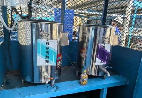 七月以来,持续高温天气给一线员工带来严峻考验。北海造船充分利用现有空间,共搭建45处现场员工休息点,配备234套餐整体式桌椅和246个长条椅,改善现场休息环境;为在高温下坚守岗位的142个一线班组职工送去防暑降温礼包,为一线员工配备饮水点,供应绿豆汤、酸梅汤、大桶水,发放防暑降温药品;根据天气情况动态调整夏季室外露天作业时间,采取错峰避让高温时段、换班轮休等方式,在无立体交叉作业区域,设置遮阳网避免阳光直晒,在船舱/密闭空间安装风机、除湿机,作业前30分钟进行通风、除湿,为舱室作业人员提供防护;组织高温作业职工进行身体健康检查,开展防暑降温培训和应急演练,提升职工自我保护意识和应急处置能力。
