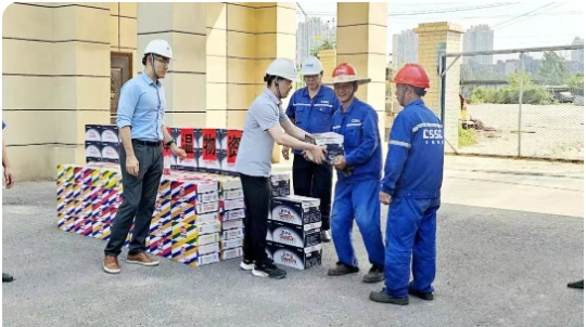 为应对持续高温天气,中船物资全面部署防暑降温工作,切实保障一线员工健康安全。下属各子公司严格落实安全生产责任,组织专项安全检查,强化作业现场安全管理;结合不同岗位作业强度,科学制定防暑降温方案,并通过安全教育提升员工应急处置能力。同时,积极开展“关爱员工送清凉”慰问活动,为一线员工发放藿香正气水、清凉饮料等防暑物资,并升级改造员工休息室,改善高温作业环境。