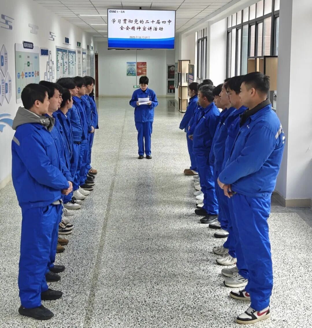 七一五所装备生产部浮标中心总装装配组组长、老党员陆园儿在班前会上,紧密围绕党的二十届四中全会精神展开宣讲,结合班组正在突击的某重点部件装配任务,用组内老师傅精益求精、连夜攻关的实例,生动诠释如何在工作中贯彻落实全会精神。