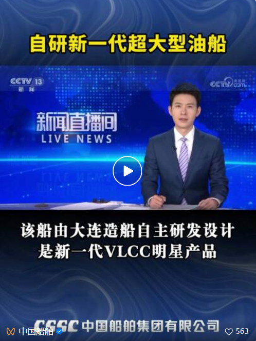 3月25日,中国船舶集团有限公司旗下大连造船为CIDO航运公司建造的30.7万吨超大型油船(VLCC)系列船首制船“君望”号提前合同期3个月成功交付。