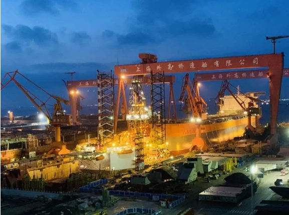 3月7日,随着一艘海上浮式生产储油船(FPSO)出坞,一艘21万吨纽卡斯尔型散货船艏艉、两个巨型分段同时起浮。标志着备关注的拥有“中国第一长度船坞”之美誉的中国船舶集团所属外高桥造船大型邮轮船厂适应性改造重点工程——2号船坞改造项目主体结构完工。