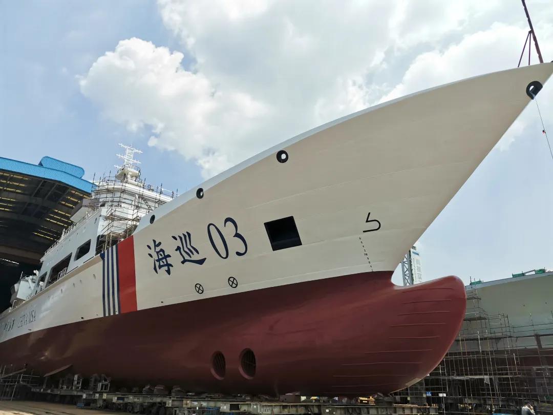 9月14日,由中国船舶集团旗下黄埔文冲建造的海南海事局大型巡航救助船“海巡03”号在广州正式下水命名。