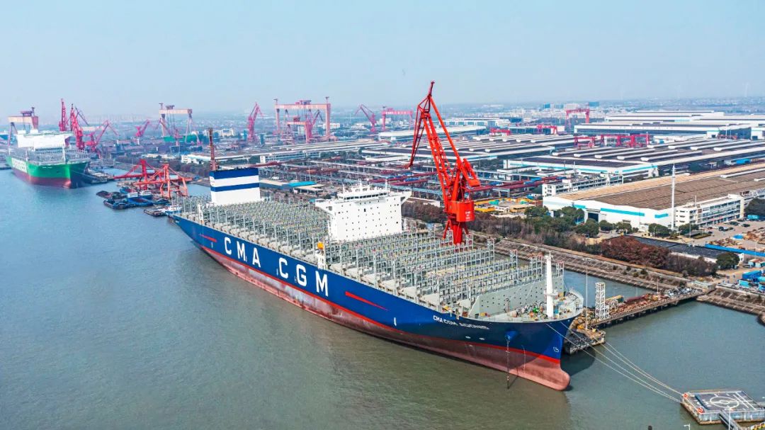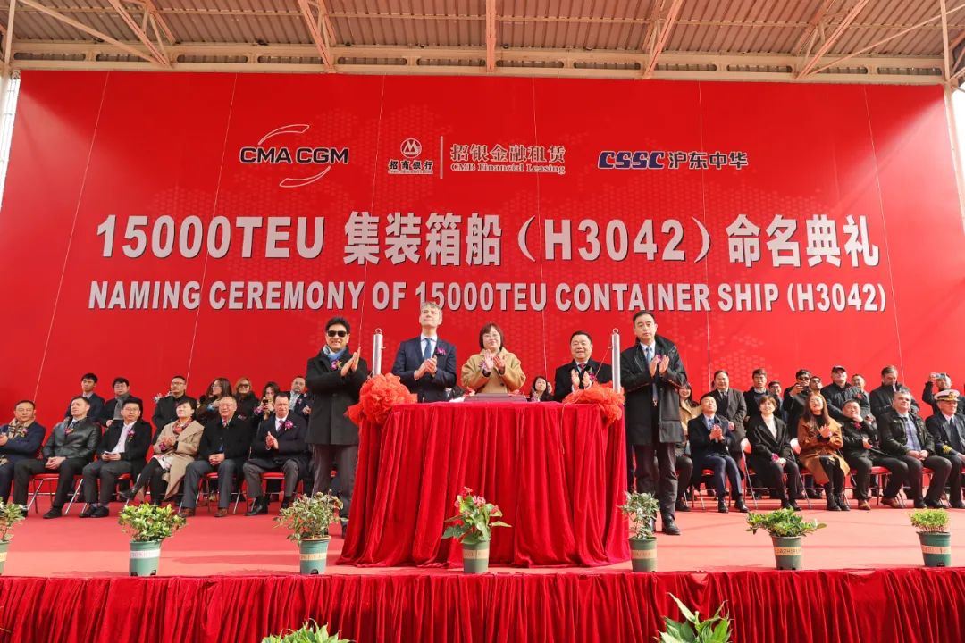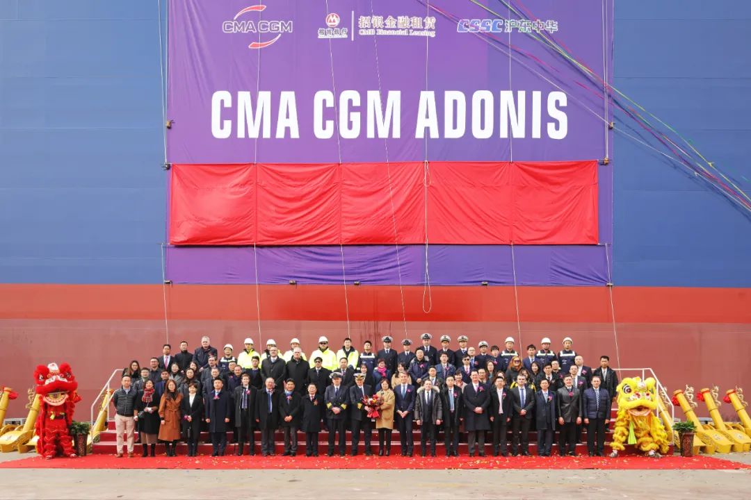 2月28日,中国船舶集团有限公司旗下沪东中华造船(集团)有限公司联合中国船舶工业贸易有限公司为法国达飞海运集团建造的15000TEU超大型集装箱船“达飞·阿多尼斯”号在上海命名。这不仅是为达飞集团量身定制的5艘常规动力系列箱船中的最后一艘,实现了平均每月命名交付一艘的既定目标,也是继由该公司建造的5艘全球首创最大、最先进23000TEU双燃料动力集装箱船之后,又一款被市场追捧的超大型集装箱船项目完美收官,进一步巩固了其全球超大型箱船建造基地的地位。