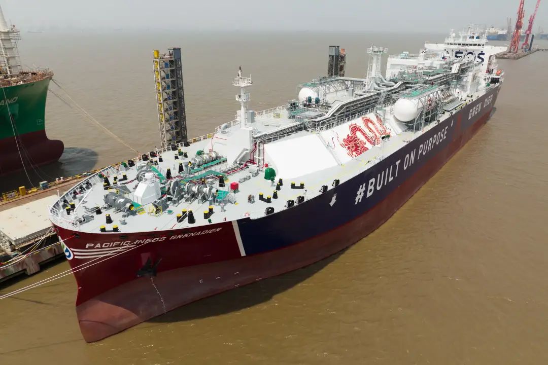 5月16日,中国船舶集团旗下江南造船为浦银租赁和山东海洋集团下属太平洋气体船(香港)控股有限公司(PACIFIC GAS)建造的99000立方米B型舱超大型乙烷运输船(VLEC)“PACIFIC INEOS GRENADIER”号交付。