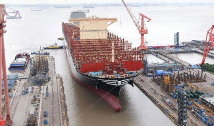 10月11日上午,中国船舶集团旗下沪东中华为地中海航运公司建造的第2艘24100TEU超大型集装箱船(H1865A)在长兴造船一号船坞顺利出坞。