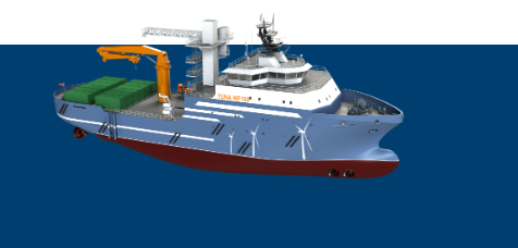 在海上风电运维船舶中,运维效率和运维能力更高的专业运维母船近年来在国外发展较快,国内市场也开始布局设计建造。上船院开发的TUNA WF60/100型海上风电运维母船已形成完整的设计方案,适合快速投入建造。其船型具备功能强、效率高、仓库容量大、人员安全舒适、拓展能力强、更符合国内风场需求等优点。