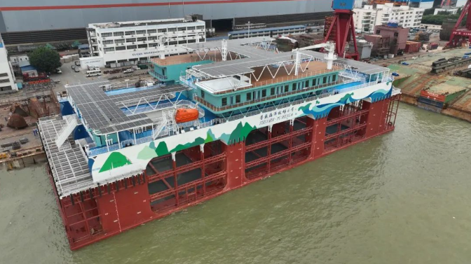 中国船舶集团旗下广船国际建造的半潜式深远海智能养殖旅游平台“普盛海洋牧场6号”命名交付。