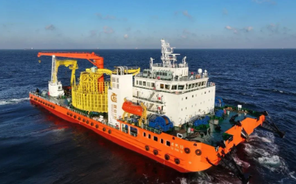 新型海缆施工船“启帆19”号是国内首艘单个转盘装缆量超过万吨级的海缆船,采用电力推进系统,具备DP-1级动力定位能力,装配有最大埋设4米埋设犁、60吨门架收放系统等专业海缆施工设备。其综合作业能力强,是目前国内载缆量最大的专业海缆船。