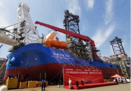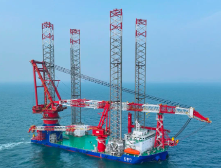 1500吨风电安装船“蓝鲲01”号配备了1500吨绕桩式主起重机,具备20兆瓦等级海上风机安装作业能力。其桩腿长度达到了125米,最大作业水深可达90米,是我国自主研发设计、具有完全自主知识产权的第四代风电安装船。