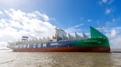 8月23日,中国船舶集团旗下沪东中华联合中船贸易为法国达飞海运集团建造的13000TEU双燃料动力集装箱船系列6号船“CMA CGM AMAZONIA”号命名交付。至此,该系列船6艘船全部交付,顺利收官。