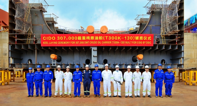 为韩国CIDO SHIPPING建造的30.7万吨超大型原油船130号船提前年度计划12天实现铺底节点,进入坞内合拢阶段。