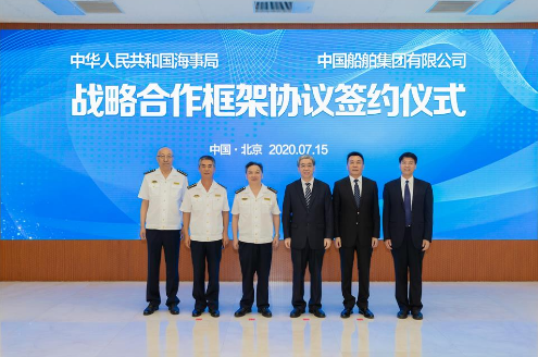 7月15日,中国船舶集团有限公司与交通运输部海事局在京签署战略合作框架协议。双方将在海洋装备制造业和海事监管领域加强战略互联、政策互通、技术标准对接,共同加快建设交通强国、海洋强国。