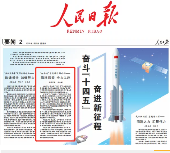 1月3日,人民日报在要闻二版【奋斗“十四五”  奋进新征程】专题报道中,以“海洋探索 全力以赴”为题刊发了对中国船舶集团七〇二所副所长“奋斗者”号总设计师叶聪的专访。