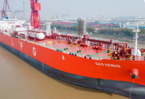 该型船为全球最大双燃料超大型液化气船(VLGC),配置4个超大型液罐,能够满载86000立方米的液化气,如果是直接供给上海这座超大型城市,可以使用超过两天。