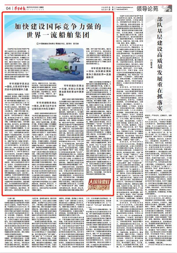 9月29日,《学习时报》刊发中国船舶集团党组书记、董事长雷凡培署名文章《加快建设国际竞争力强的世界一流船舶集团》,现全文分享如下。