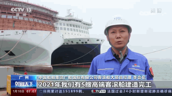 中国船舶集团广船国际有限公司客滚船大项目经理 李会伦:2021年我们有5艘高端客滚船建造完工,极具里程碑的意义,我们成功攻克了包括振动噪音控制等一系列的核心技术。
