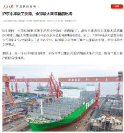 媒体聚焦|中国船舶沪东中华:全球最大集装箱船出坞,产能恢复75%以上
