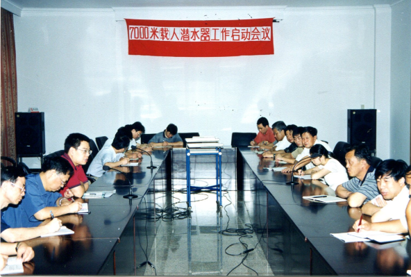 △7000米载人潜水器总体组及总师组成立大会,发言者为徐芑南。